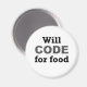 Will Code for Food aimnet. Qui n'aime pas l'humour geek d'ordinateur ? Achetez cet aimant drôle pour vous-même ou comme cadeau pour ce programmeur informatique spécial dans votre vie!