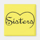 Un design mis à jour avec le haut d'un coeur et le mot SISTERS y a travaillé - en écriture noire sur un arrière - plan uni ou de couleur solide. Beaucoup de place pour la personnalisation. Vous pouvez changer la couleur de l'arrière - plan à votre préféré !