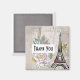 Un aimant de remerciement avec un joli collage de fleurs peintes et des postmarks vintages avec une illustration noire de la tour eiffel. Le design chic et chic.