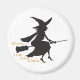 Une silhouette de sorcière sur un balai avec les mots en orange "Oh oui, je peux conduire un bâton."