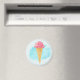 Un aimant délicieux avec une délicieuse illustration de cône de crème glacée, avec une boule de crème glacée de fraise rose tenue par un cône gaufre. Placez-vous sur une plaque d'aquarelle bleu aqua / brosse.
