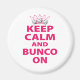 Gardez Calme et Bunco sur le design. Design graphique amusant qui sera un succès à votre prochain événement Bunco. Achetez-en un en tant que prix ou cadeau. Comprend une couronne et trois dés. Vous pouvez modifier la couleur de l'arrière - plan sur la plupart des éléments.