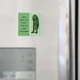 Magnets amusants pour les cool de votre vie. Sur la droite de l'aimant se trouve un concombre vert aux teintes foncées, un gilet noir et des bottes brunes. Il se tient debout avec des bras pliés et un sourire excentrique. Sur le côté gauche en lettres noires, il est écrit "Que votre journée soit aussi cool que ce concombre". L'arrière - plan est vert avec des rayures vert pâle.