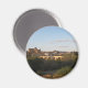 Cet aimant présente une photo prise à distance de Cordoue, Espagne. C'est juste avant le coucher du soleil et cette ville ancienne et les arbres qui l'entourent sont baignés d'une lumière dorée pâle qui n'a pas encore pénétré le ciel bleu au-dessus.