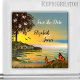 Un aimant romantique avec un paysage côtier avec un arbre en fleurs et des papillons colorés au coucher du soleil. Magnifique comme un aimant Save the Date et personnalisable pour d'autres situations.