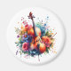 L'aquarelle représente un violoncelle entouré de jolies fleurs rouges, bleues et oranges et de feuillage botanique.