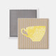 Le design moderne et charmant est agrémenté d'un arrière - plan rayé brun clair et d'une tasse à café jaune ensoleillé au centre.