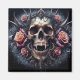Une représentation détaillée d'un crâne sinistre entouré de roses vibrants, orné d'ornements gothiques, mêlant symbolisme sombre et beauté dans une représentation artistique et surréaliste.
