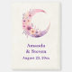 Mariage enregistrer l'aimant de date avec une belle illustration montrant une lune rose et violette douce croissant. De jolis fleurs sauvages roses et jaunes ornent ce corps céleste.