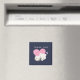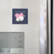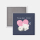 Aimant Merci avec une adorable illustration graphique. Un chaton blanc avec une jolie image empreinte de patte sur sa fourrure. Dormir tranquillement. Un grand coeur rose derrière elle et quelques petites étoiles aussi. Arrière - plan bleu foncé.
