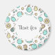 Un aimant de remerciement avec une jolie ligne de motif de fruits style dessin. Couleurs vert clair et jaune. Un design estival amusant. Un cercle blanc superposé avec votre texte à l'intérieur.