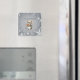 A cute grey mouse dressed for winter in a stocking cap and scarf holds berries and wishes you “Happy Holidays.” It is surrounded by a white snowflake design. The greeting can easily be changed to anything you prefer.