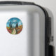 Paysage toscan, coloré, vibrant, beauté expressive de la campagne italienne, collines vertes, ciel bleu, nuages, champs de pavot, champs de fleurs, peinture acrylique dans jaune vif, orange, rouge, couleurs bleues sur toile ronde.
