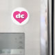 Cet aimant est doté d'un coeur rose chaud et vibrant contenant les lettres coques inférieures dc, blanches et arrondies, une abréviation ludique pour le District de Columbia.