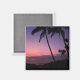 Aimant photo souvenir d'un ciel rose et violet au coucher du soleil sur une plage de palmiers en silhouette noire sur l'île tropicale de Maui, Hawaii.
