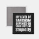 Si vous aimez les citations sarcastiques drôles ou les grands desseins humoristiques, ce slogan original "Mon niveau de sarcasme dépend de votre niveau de stupidité" est pour vous. C'est un excellent cadeau pour votre famille, vos amis ou vous-même ! Ce design est idéal pour tous ceux qui aiment le sarcasme et l'humour. Si vous aimez cette citation drôle, découvrez d'autres oeuvres similaires dans omitay store. Restez en sécurité et merci de soutenir un artiste local.