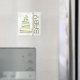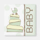 Aimant illustrant un gâteau baby shower avec une palette de couleurs verte, brune et crème et un chariot bébé vert assorti au dessus. Le côté droit est vert avec garniture brune. Texte Brown : "BÉBÉ". L'Arrière - plan est un pois vert pur. Idéal pour une faveur baby shower. Recherchez les invitations et l'affranchissement correspondants dans la catégorie "Bébé" de la paperie de Jill.