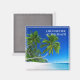 Cet aimant est montré avec une belle photo de plage tropicale imprimé. Texte : La vie est meilleure à la plage. Customisez cet aimant ou achetez tel quel. Image stock freepik.com