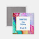 Anniversaire ou autre événement enregistrer la date magnet avec un design abstrait artistique fantaisie. Peinture aquarelle avec les couleurs mélangeant et mélangeant créant un motif marbré fluide. Un cadre blanc avec une fausse bordure en feuille d'or superposée avec votre texte personnalisé écrit à l'intérieur.