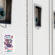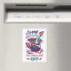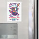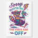Un design coloré et dynamique, avec un raton laveur de dessins animés en casquette de cowboy, fait monter un coureur de dessins animés. Le texte coloré dit : "Désolé, les vibes sont éteintes". Ce design est disponible sur une grande variété de produits.