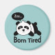 Joli panda de dessin animé dormant sur son ventre avec la légende drôle "Born Tired". Panda a l'air facilement fatigué à cause des taches noires foncées autour de ses yeux qui ressemblent à des anneaux oculaires sombres du manque de sommeil. Pour tous ceux qui aiment les animaux adorables ou les dessins humoristiques.