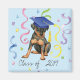 Félicitez votre diplômé favori avec un cadeau avec un heureux diplômé de Miniature Pinscher portant un mortier au milieu d'une flûte de confettis.