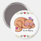 Joli chat endormi dans un cadre de coeurs... aimant charmant à afficher sur votre réfrigérateur et à offrir à tous ceux que vous voulez.