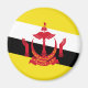 Le drapeau national de Brunei a la crête de Brunei au centre, sur un champ jaune. Le champ est coupé par des bandes diagonales noires et blanches, bien qu'elles soient officiellement appelées parallélogrammes. Le champ jaune représente le sultan de Brunei. (En Asie du Sud-Est, le jaune est traditionnellement la couleur du pourcentage, et les normes royales de Malaisie et de Thaïlande, ainsi que le drapeau présidentiel de l'Indonésie, utilisent aussi un champ jaune.) La crête se compose d'un croissant (symbolisant l'islam) associé à un parasol (symbolisant la monarchie), et de deux mains retournées des deux côtés (signifiant la bienveillance du gouvernement). Sous le croissant se trouve un ruban. Sur le croissant et le ruban sont des inscriptions arabes qui se traduisent par "l'Etat de Brunei, au-dessus de la paix" et la devise de Brunei, "Toujours en service avec la direction de Dieu"