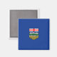 Ce dessin est orné du drapeau de la province canadienne de l'Alberta. Il a été adopté pour la première fois en 1968, et il présente le bouclier provincial des armes au centre d'un arrière - plan bleu ultramarine. L'Alberta est bordée par les provinces de la Colombie-Britannique à l'ouest, les Territoires du Nord-Ouest au nord, la Saskatchewan à l'est et l'État américain du Montana au sud. La capitale de l'Alberta, Edmonton, est située près du centre géographique de la province et est un important centre de l'industrie pétrolière du Canada. La plus grande ville de l'Alberta est Calgary, qui se trouve à environ 290 kilomètres au sud de la capitale.