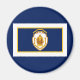 Aimant avec le drapeau de Springfield, Massachusetts. Un drapeau bleu avec un contour jaune et blanc et l'illustration de la statue d'Auguste Saint Gaudens au centre