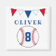 Aimant Anniversaire de enfant de baseball Ball Bunting drapeaux. Le design a des drapeaux de baseball et de bunting dans les couleurs rouge, blanc et bleu. Ajoutez votre nom et votre âge.