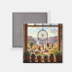 Western themed Magnet. Add a touch of the West to your office or workspace with this rustic window with with a dream catcher looking out over desert cacti, and a canyon. Potted cactus line the window sill.