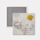 Amusez-vous dans une ambiance classe pour vos noces imminentes avec le joli Elegant White Daisy Mariage Magnet Carré. Personnalisez-le avec les noms de la date de la mariée, du marié et de la cérémonie de mariage. Ce mariage fleuri personnalisé garde l'aimant dateur dispose d'une photo florale d'un gros plan d'une fleur marguerite blanche, bague fiançailles de diamant coupée princesse et collier de perle blanche.
