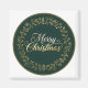 Share timeless holiday cheer with this elegant Christmas design. Set on a rich dark green circular background with a refined gold border, a festive wreath of golden holly leaves and delicate snowflakes beautifully frames the message “Merry Christmas.” The word “Merry” shines in shimmering silver script, while “Christmas” appears in complementary golden lettering, both with a luxurious metallic finish. Perfect for traditional Christmas greetings, this design radiates warmth, sophistication, and classic holiday spirit.