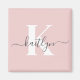 Ce simple et élégant aimant carré rose pâle de 2" avec votre prénom dans une police de script tendance en gris et votre première initiale dans une police casquette moderne en blanc est parfait pour vous. C'est design, tendance et pourtant très classique. Il aura l'air fabuleux sur votre meuble, réfrigérateur, bureau.