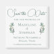 Un script de calligraphie verte simplement élégant avec deux feuilles d'eucalyptus aquarellées de chaque côté en bas pour décorer ce magnifique aimant Save the Date minimaliste d'automne. Une charmante suite de mariage moderne pour une occasion de jardin en soirée.