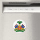 Armoiries d'Haïti. Les armoiries d'Haïti ont été introduites à l'origine en 1807, et sont apparues dans sa forme actuelle depuis 1986. Il montre six drapeaux drapés du pays, trois de chaque côté, qui sont situés devant un palmier et des canons sur une pelouse verte. Sur la pelouse, on trouve divers objets, comme un tambour, un fusil, des armes longues et des ancres de navire. Au-dessus du palmier se trouve un casquette phrygien placé comme symbole de liberté. Sur la pelouse entre le tambour et le ruban, il était supposé y avoir deux morceaux de chaîne avec un maillon brisé symbolisant la chaîne brisée de l'esclavage. Le ruban porte la devise : L'Union Fait La Force. Cela ne doit pas être confondu avec la devise nationale d'Haïti, qui selon la Constitution d'Haïti est "Liberté, Égalité, Fraternité".