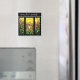Belle reproduction de verre de Tiffany. Foxglove Flowers et un coucher de soleil dans l'arrière - plan sur cet aimant coloré en verre tendu.