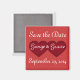 Cet aimant à frigo Save the Date présente deux coeurs cramoisis côte à côte avec les noms de la mariée et du marié à travers eux dans une police blanche sur un arrière - plan rouge-rose muet. Les mots "enregistrer la date" apparaissent au-dessus du coeur, et la date apparaît ci-dessous. Le design peut être customisé pour une fête de fiançailles, une douche nuptiale, un dîner de répétition, un mariage, un anniversaire ou la fête de la Saint-Valentin, sauf la date ou la faveur de la fête.