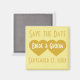 Cet aimant frigo présente une paire de coeurs d'or massif surligné par les noms de la mariée et du marié avec les mots "Enregistrer la date" ci-dessus et la date ci-dessous. Peut être customisé pour une fête de fiançailles, une douche nuptiale, un dîner de répétition, un mariage, un anniversaire ou la fête de la Saint-Valentin, ou enregistrer la date. Les coeurs d'or sont particulièrement appropriés pour les célébrations du 50e anniversaire.