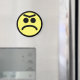 Face de sourcils jaunes. Un visage jaune noir avec un gros sourcil malheureux. Deux cercles noirs pour les yeux, et un gros unibrow vers le haut de sa tête. Pas heureux, contrarié.