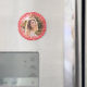 Create your own girly glam round magnet featuring a round faux red glitter border.