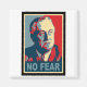 Le design de FDR imite l'affiche "Obama Hope", avec le texte "Pas de peur". Après le New Deal, le président Franklin Delano Roosevelt a proposé une 2ème Déclaration des droits qui garantissait l'éducation, un salaire minimum, des soins de santé universels, une concurrence loyale, un logement décent et la sécurité économique à tous les citoyens des États-Unis. Démocrates, libéraux et progressistes devraient suivre le FDR et pousser pour ce genre d'espoir et de changement.