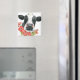 Ferme à pavot I par Grace Popp. Comprend un gros plan d'une vache entourée de fleurs rouges-roses vibrantes.