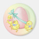 Petits poussins dansants avec oeuf rose pastel et arc. Design pastel mignon parfait pour les fêtes de Pâques et de Printemps.