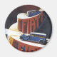 Publicité vintage Fiat Automobile montrant des voitures bleues circulant sur les routes soutenues par le nom de l'entreprise.