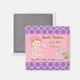 Un bébé adorable gardienne avec un bébé assis vêtu de rose sur un arrière - plan rose pastel avec un groupe de roses. Le nom de l’enfant figure en haut dans les grandes lettres décoratives, et en bas et en bas, il y a aussi la date et l’heure de naissance de l’enfant. Au centre se trouvent les statistiques de naissance, la longueur et le poids. Un souvenir parfait pour la nouvelle petite fille. Tout cela sur un arrière - plan motif de quatrefoil rose violet.