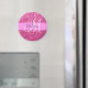 La parties scintillant rose vif brille d'un monogramme blanc et d'un aimant initial. Votre nom personnalisé et votre monogramme sont écrits dans un élégant script écrit à la main avec un arrière - plan rose. Un cadeau d'anniversaire ou de Noël parfait !