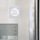 Un aimant de fête avec un motif avec une ambiance estivale amusante. Flamants roses et ananas posés sur un motif rayé bleu clair avec feuilles et coeurs tout autour.