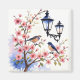 Fleurs de cerisiers, illustration avec oiseaux et fleurs.